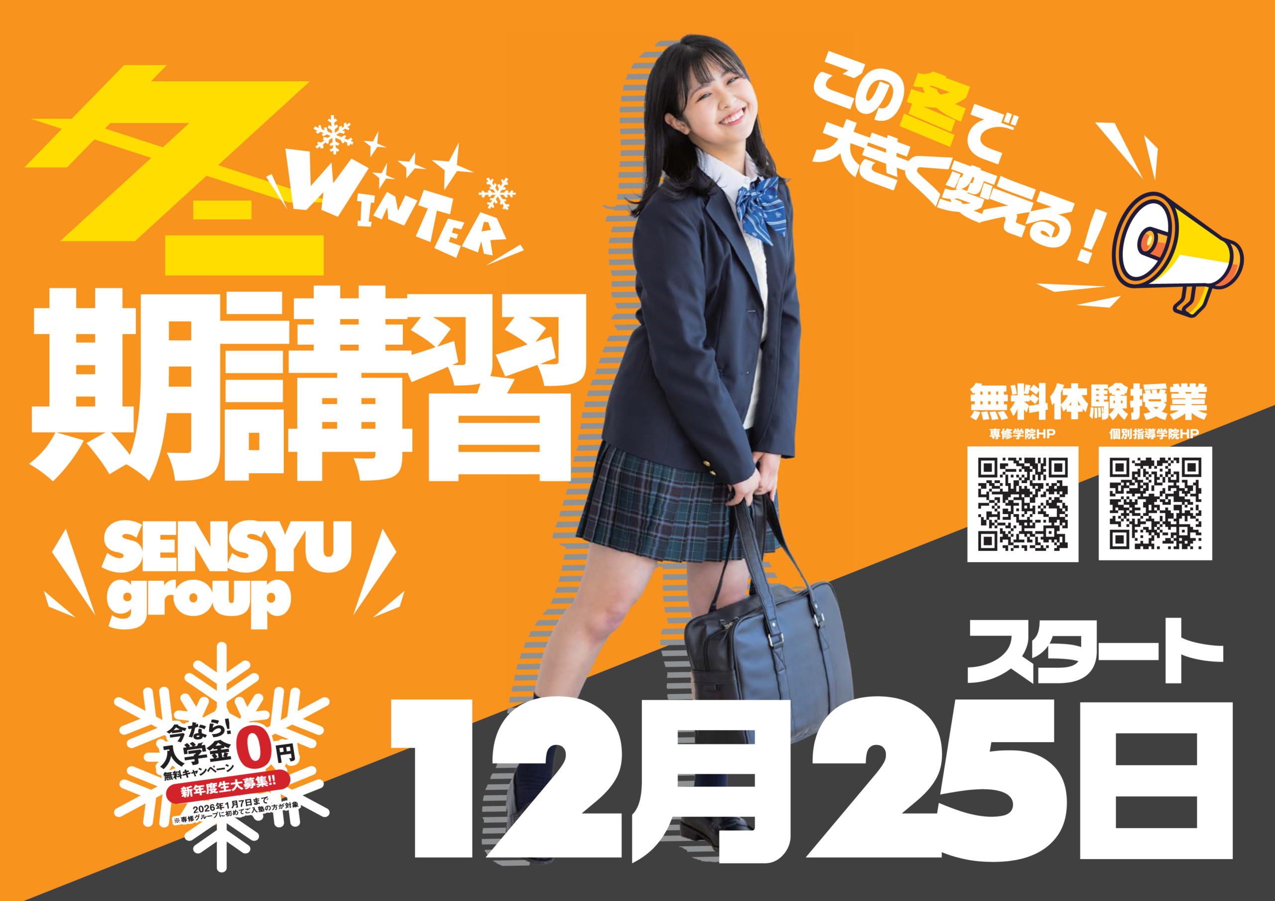 専修グループでは、 冬 期 講 習 の受け付け中です☃
