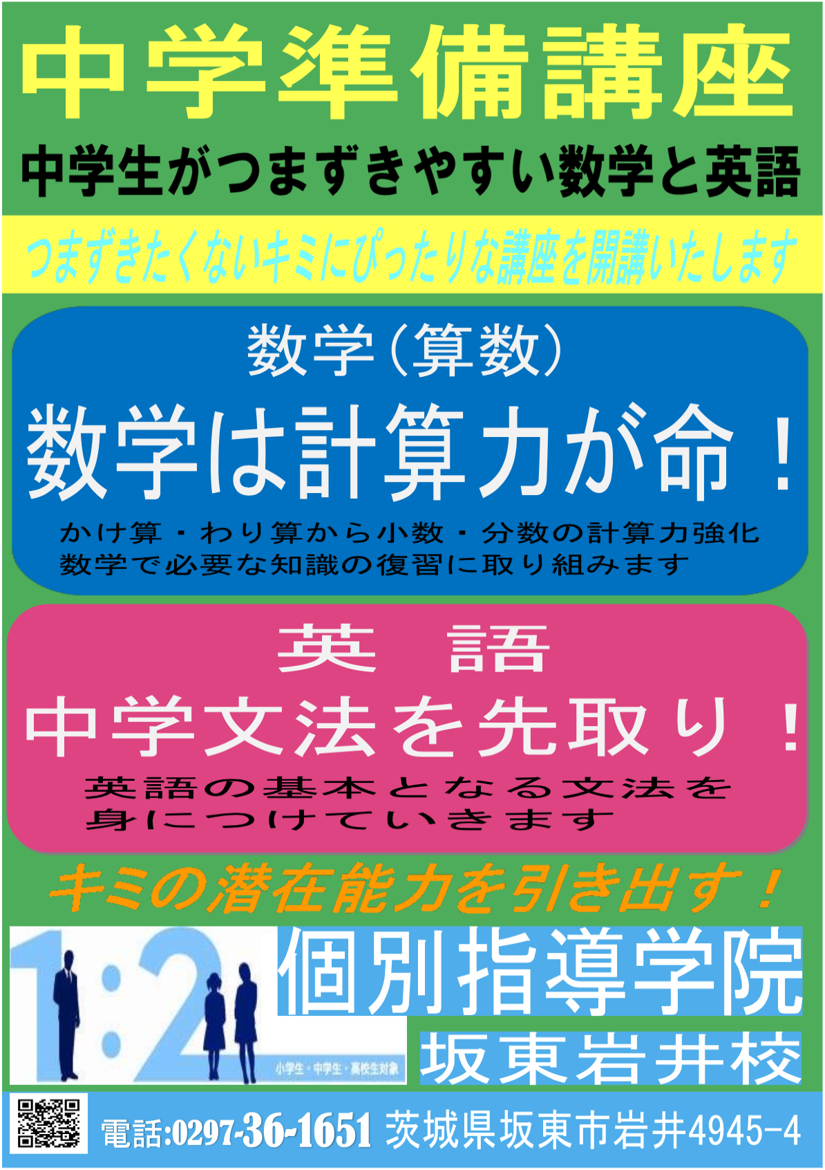 個別指導学院坂東岩井校 TEL 0297-36-1651 LINE メール