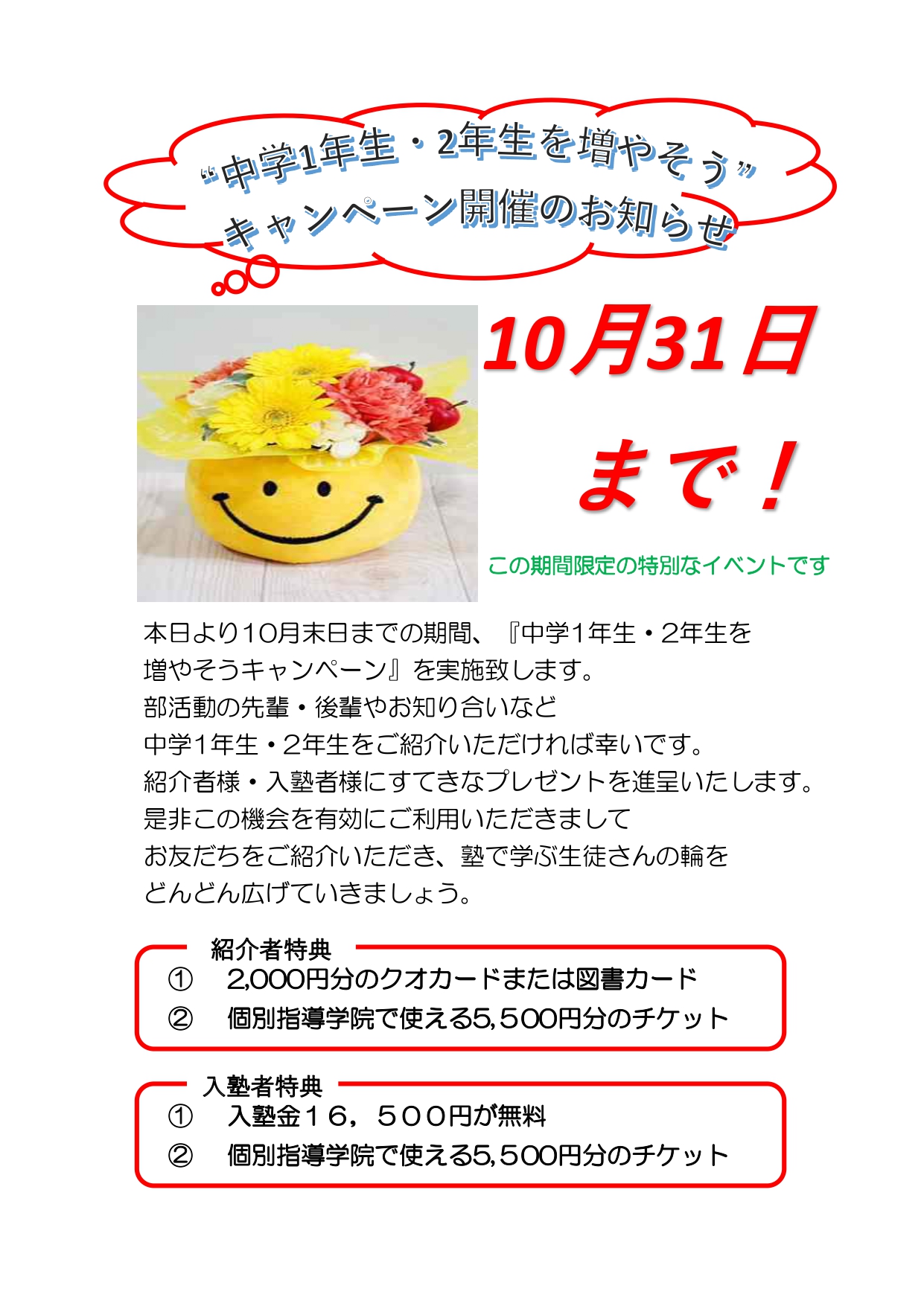 ■ 2025.09.29 中1生・中2生を大募集します!!